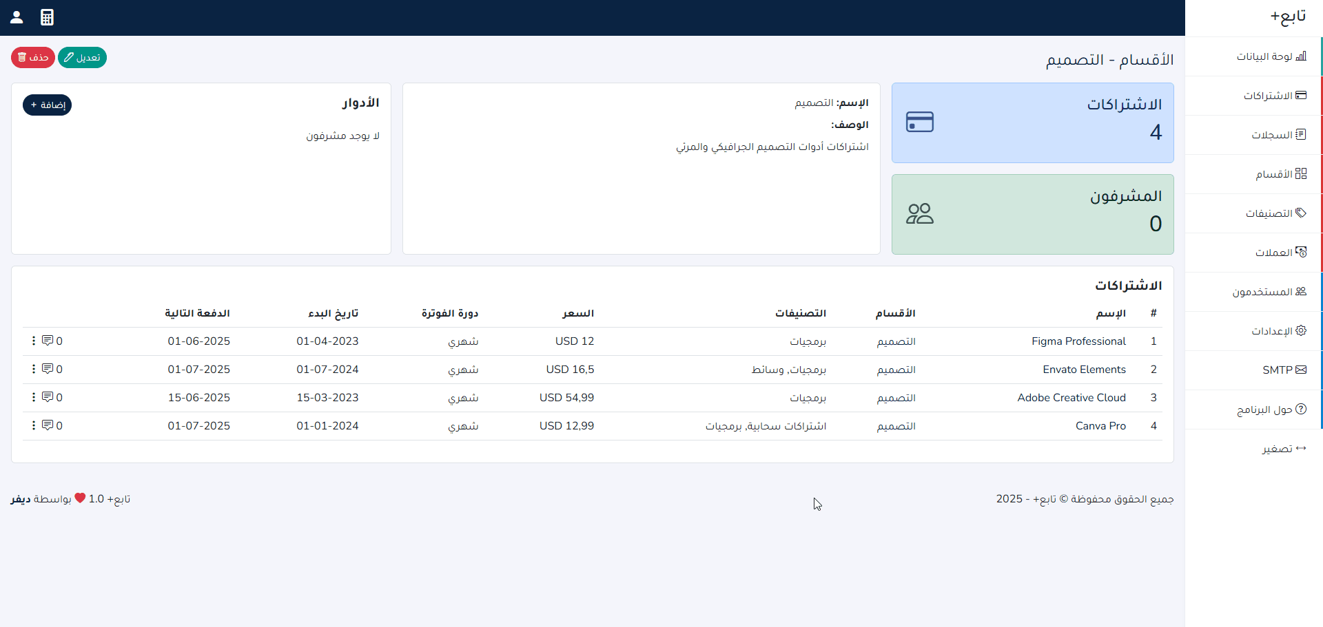 تابع بلس – نظام ذكي لإدارة الاشتراكات والتتبع المالي