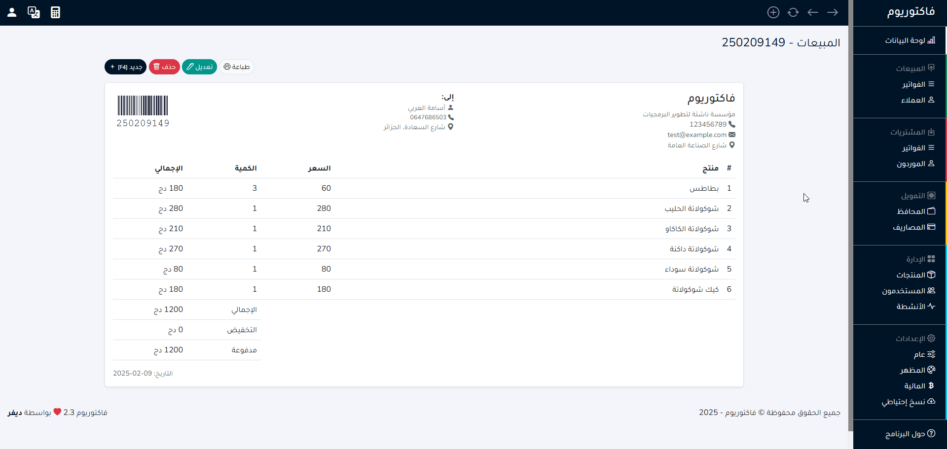 فاكتوريوم – نظام شامل لإدارة المبيعات والعمليات المالية