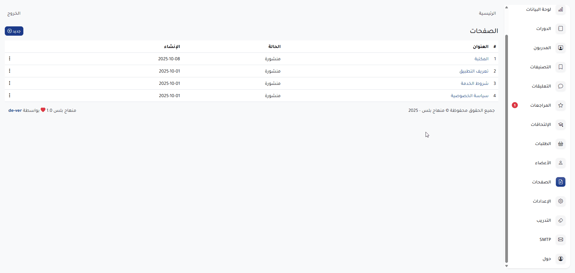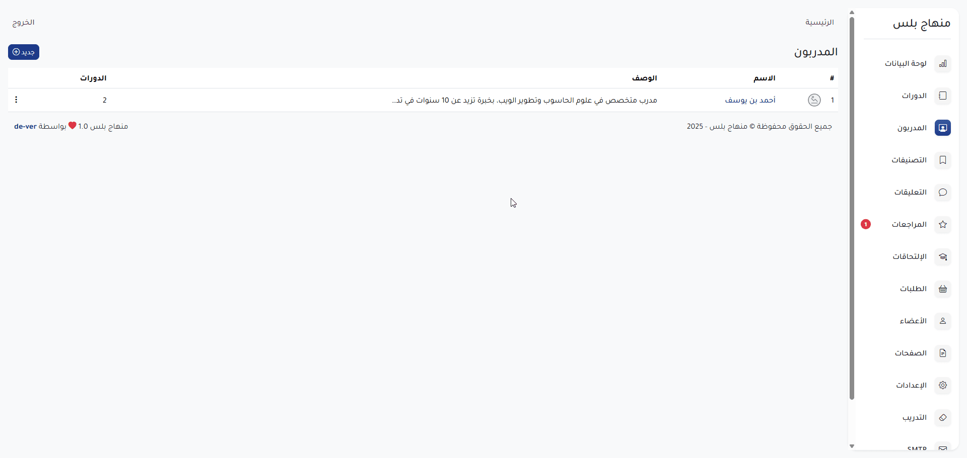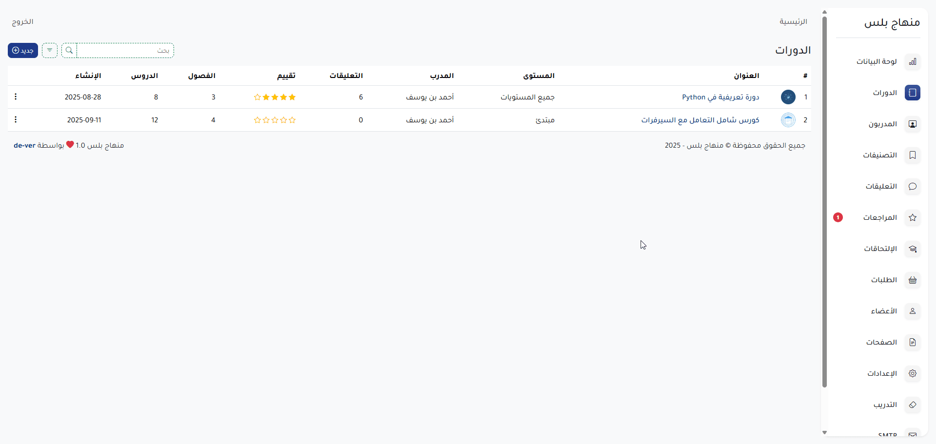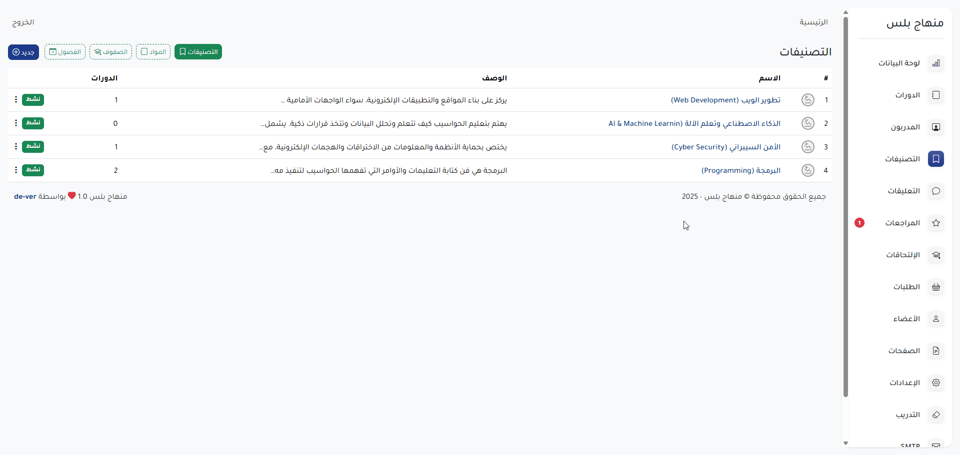 يعتبر قسم إدارة الكورسات في منهاج بلس قلب النظام التعليمي، حيث يمنح المدرس أو المسؤول القدرة على التحكم الكامل في كل جانب من جوانب الكورس بطريقة مرنة واحترافية.