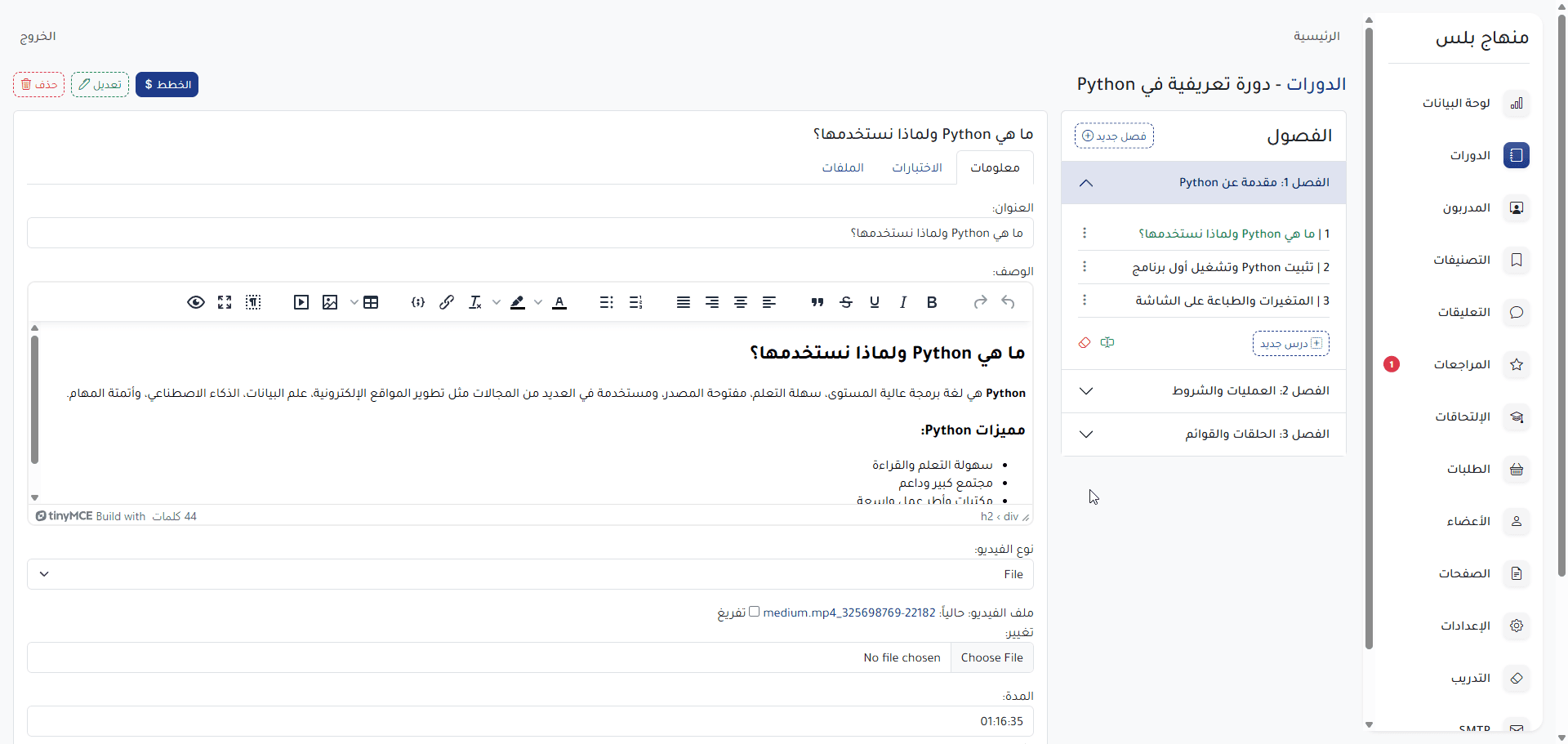 منهاج بلس – النظام الشامل لتقديم الكورسات أونلاين والتعليم عن بعد