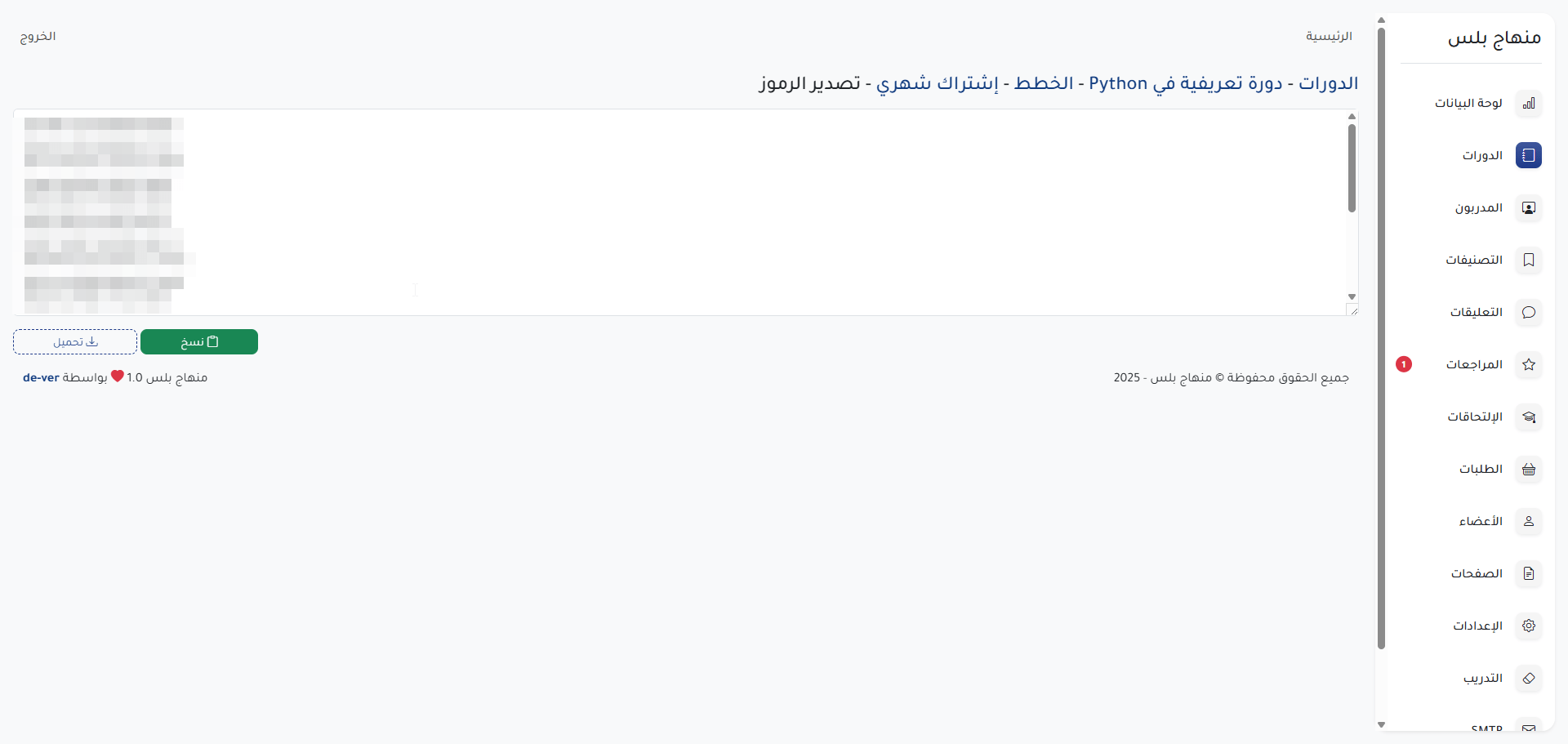 منهاج بلس (Minhaj Plus) هو نظام متكامل للتعليم الإلكتروني وإدارة الدورات التدريبية عبر الإنترنت، مصمم خصيصًا للمدرّسين والمؤسسات التعليمية التي ترغب في تقديم تجربة احترافية وآمنة للطلاب، مع إدارة مرنة للمبيعات والمحتوى والاشتراكات.